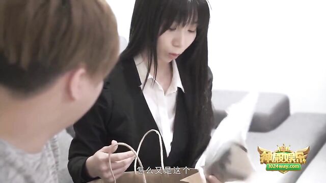 Mujer refinada en escena de garganta profunda de AsiaM