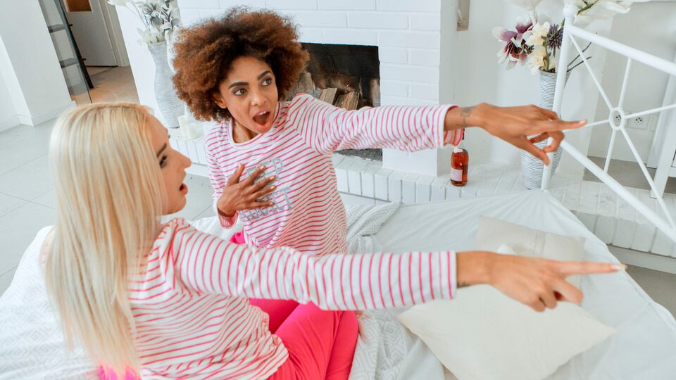 Descripción: Two interracial bisexual girlfriends Luna Corason and Daisy Lee fool around in bed. They chat about men and relations they had and even have a drink when a dude in a mask of an evil clown comes up to them. First, he plans to scare the cuties but when he sees how hot and naughty they are, he changes his mind completely. Soon, he undresses the playful babes, teases their pussies and asses and penetrates their sweet holes by turns. Of course, naughty chicks return the pleasure by giving him a double blowjob and moving hips up and down his erected cock.