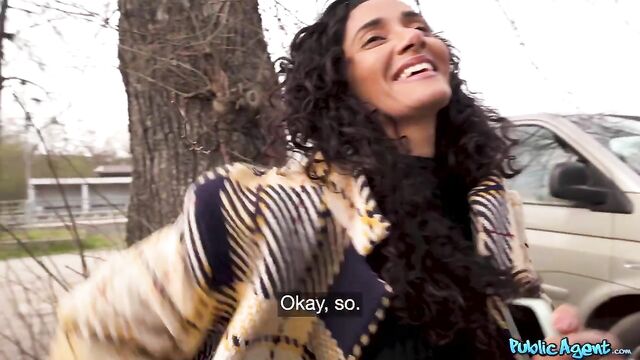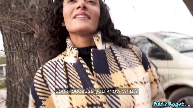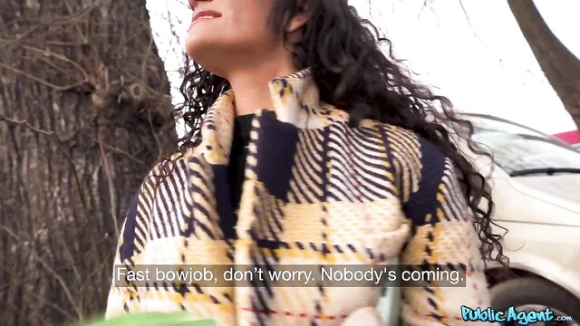 Description:At first all I could see of Milla Ferrazzo in her winter coat was her pretty face and curly black hair, but that was enough for me to stop her in the park! Milla is a dancer from Brazil who was visiting Prague for the first time and finding it quite chilly, but with a little encouragement and some cash in hand, she was willing to open her coat and show me that dancer's body, and even her perfect tits. With some more cash, we found a spot indoors for a sneaky fuck, and watching Milla's big booty bouncing on my cock was worth every Euro!